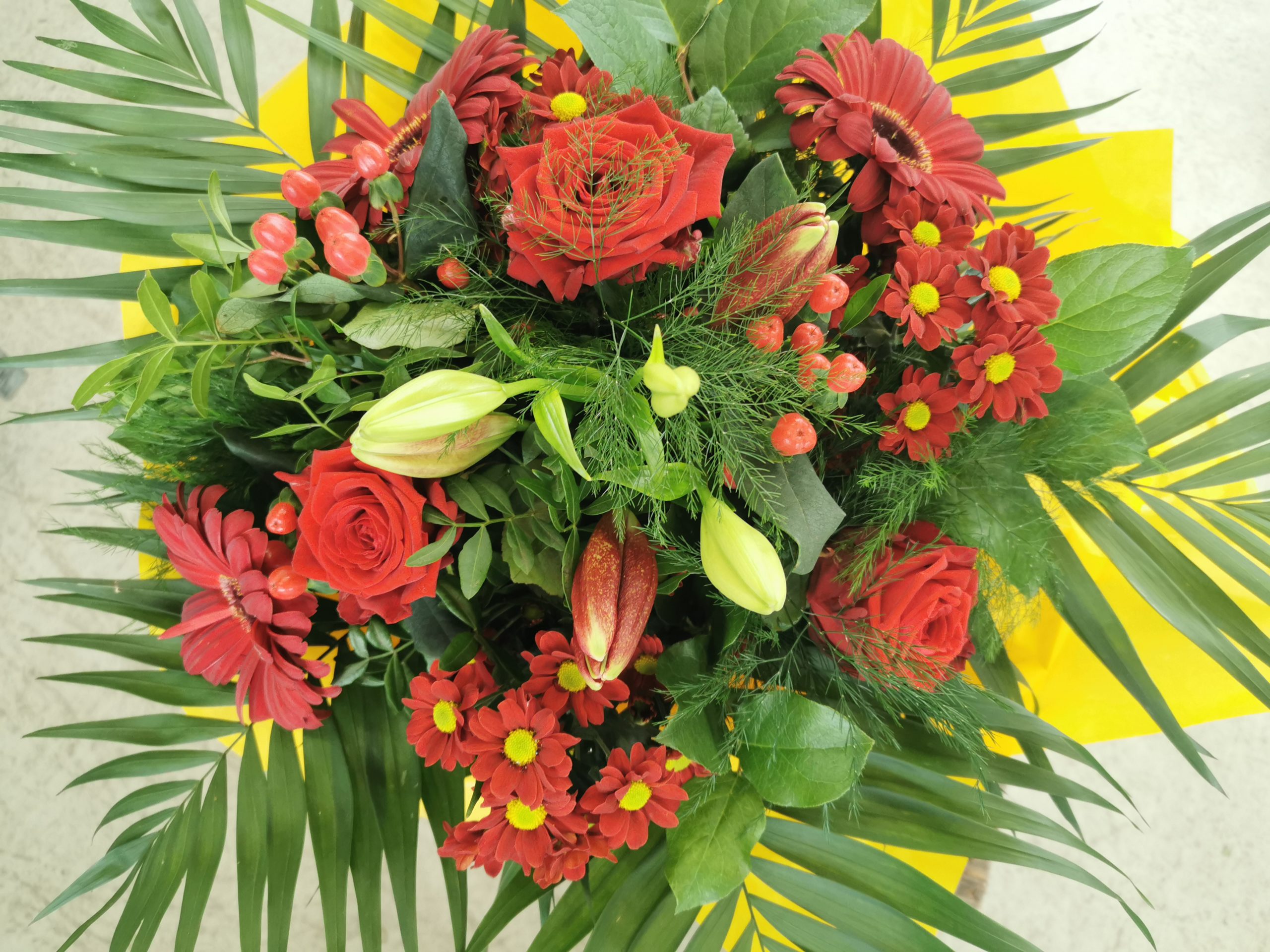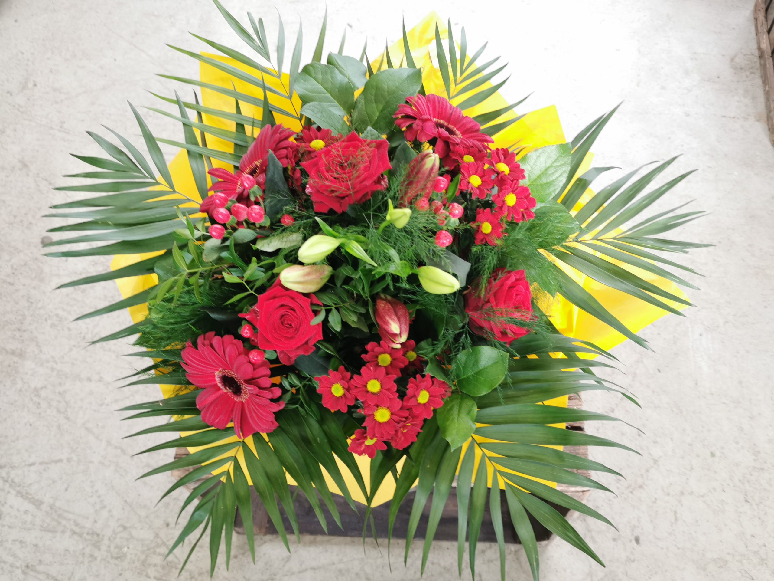 Hochstrauß mit Anthurien in gelb