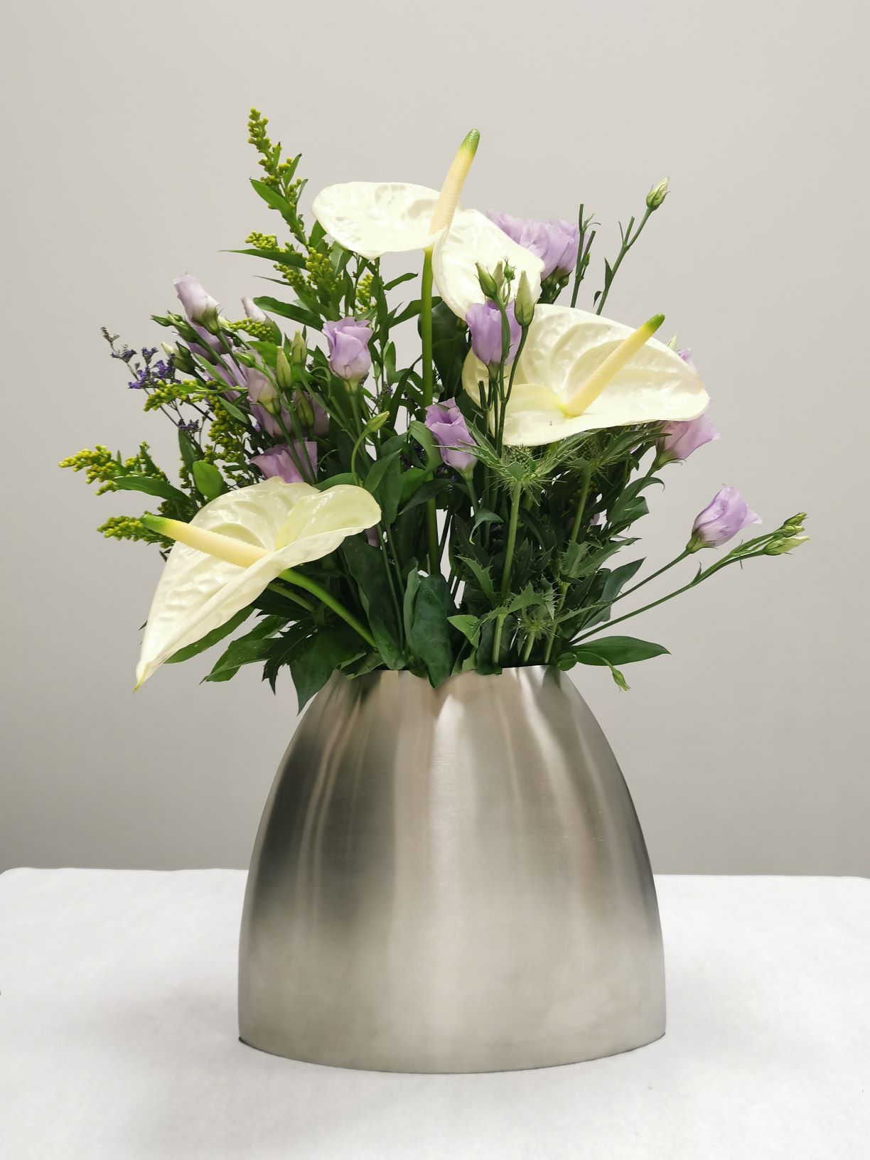Exquisite Berndorf Vase mit gemischten Blumen Menge